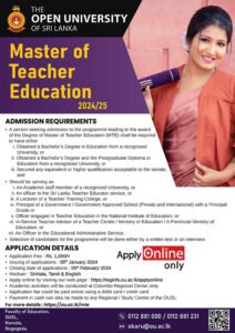 Master of Teacher Education 2024/25 – Open University of Sri Lanka