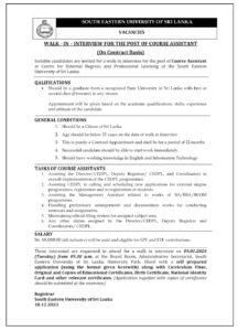 South Eastern University of Sri Lanka -Course Assistant Vacancies 2023
